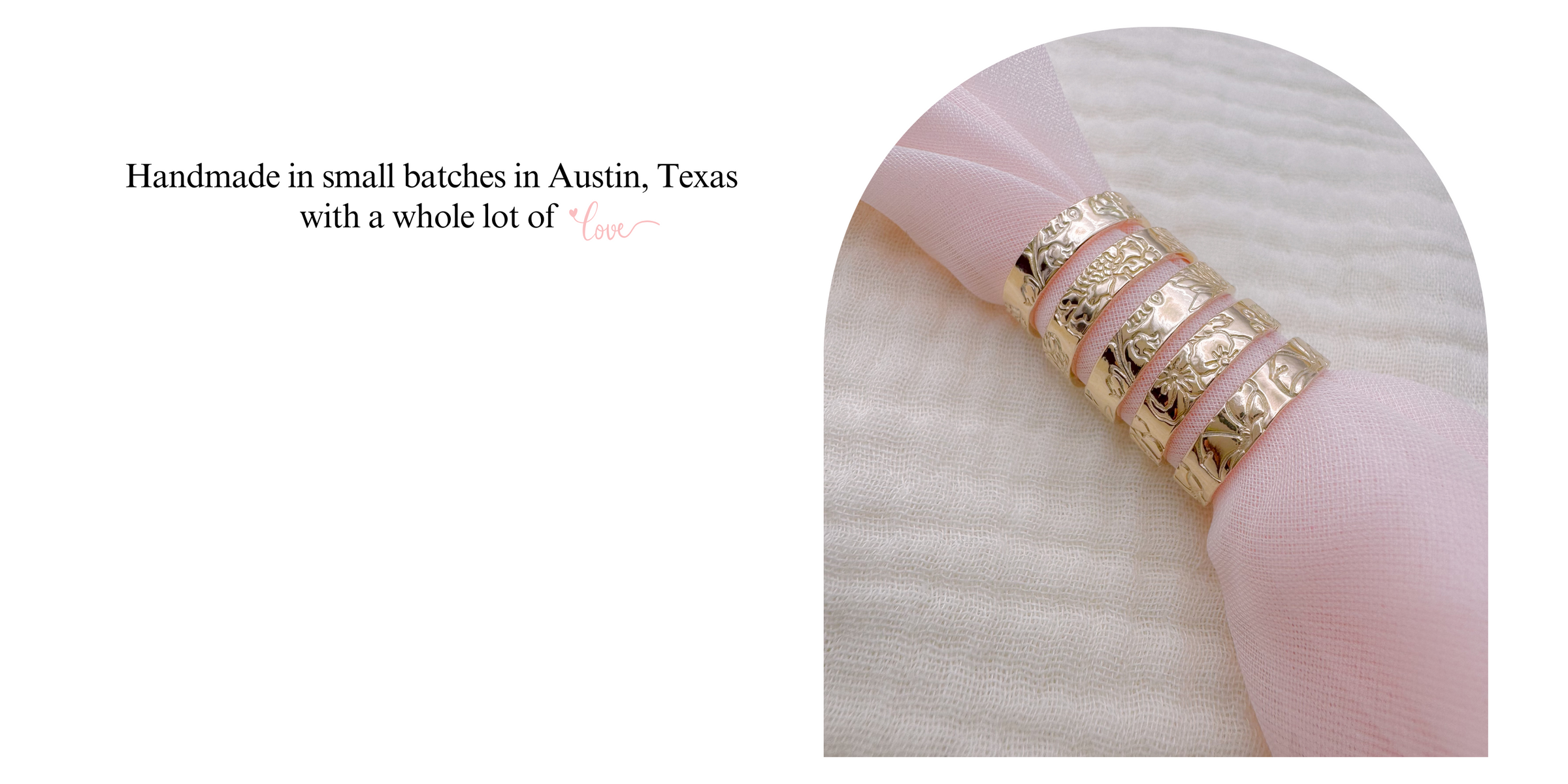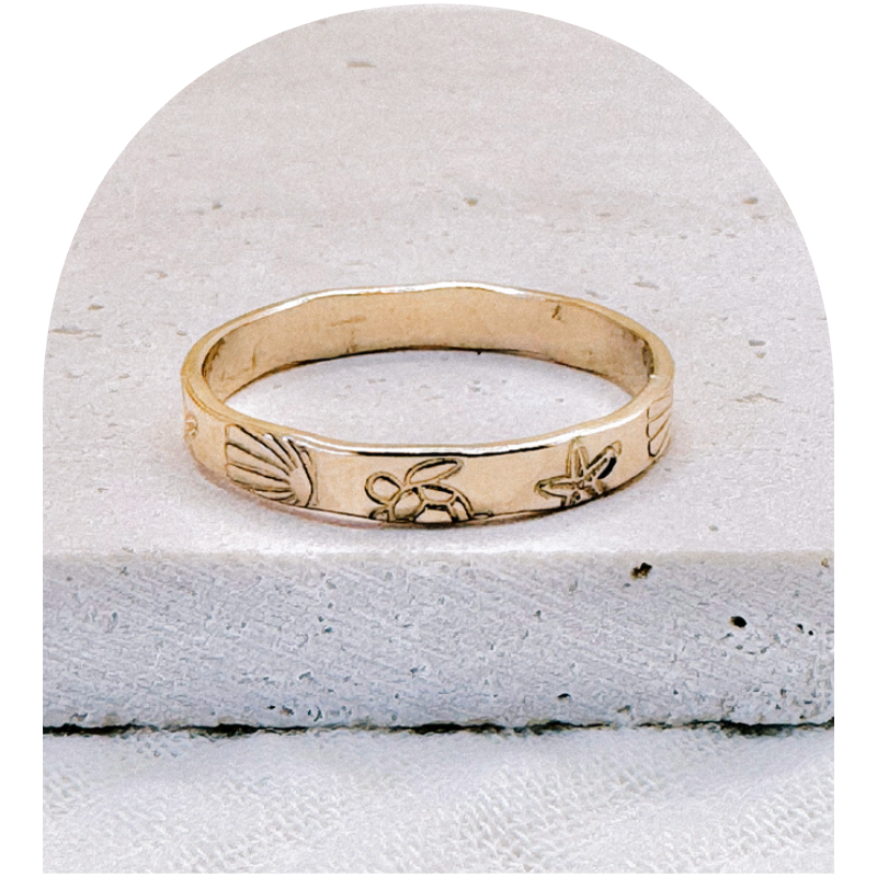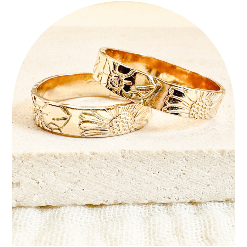 Meticulously hand-stamped in Austin, TX, each ring is a testament to artisanal elegance—available in 14k gold-filled or sterling silver.