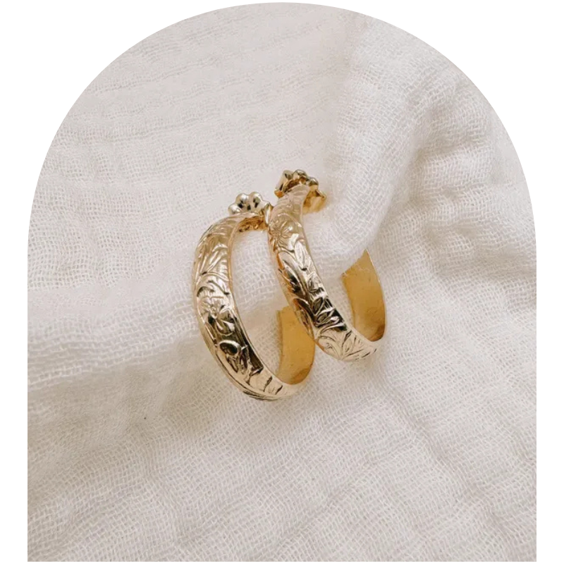 Inspired by the ornate beauty of vintage jewelry, these floral hoops blend old-world charm with refined craftsmanship—an elegant statement for lovers of timeless style.